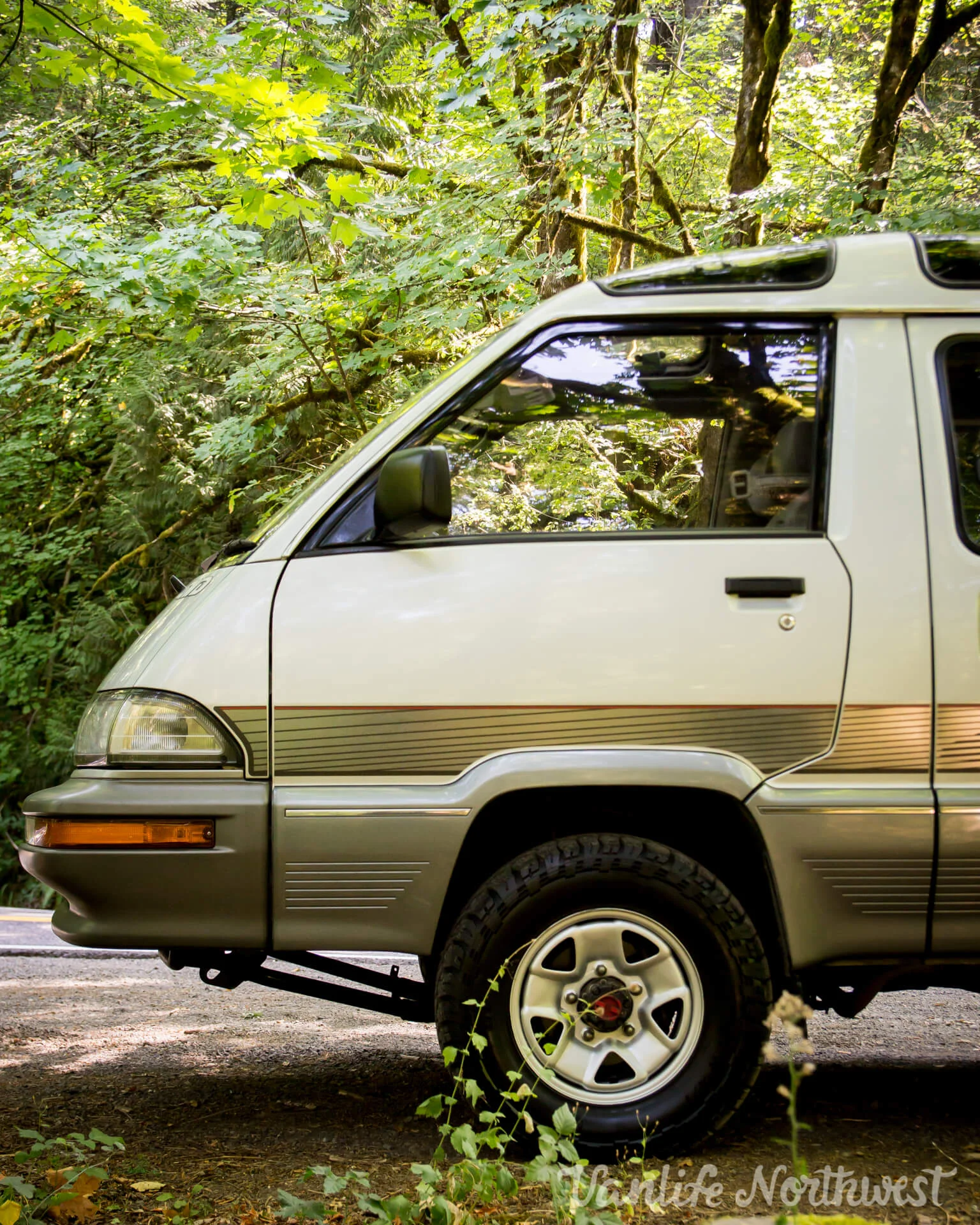 This base model Master Ace Surf features a manual 5-speed transmission, hi-low range 4wd transfer case, and Toyota’s 2CT 2.0 liter turbo diesel. This entry-level model is unencumbered by air conditioning components and plush interior details, yet features the ever-desirable Skylite Roof. Upon it’s completion, this van was picked up from our shop by its new owner, then immediately road-tripped cross country from Portland, Oregon to Shrewsbury, Vermont. The van performed wonderfully, and the new owner arrived home without issue.